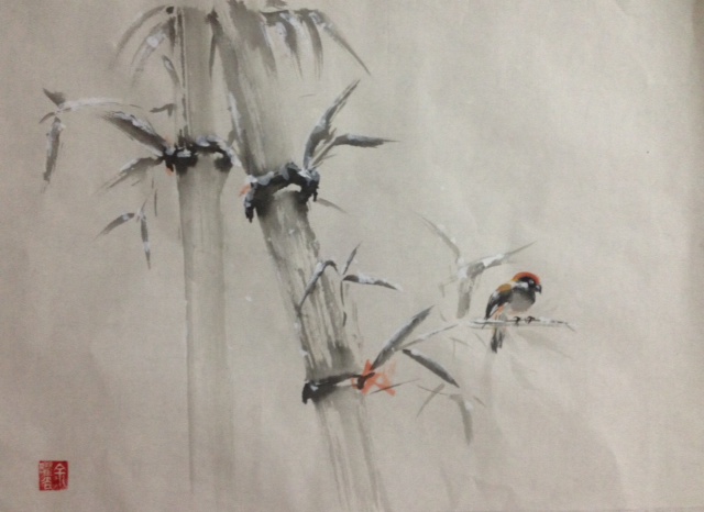 bamboo, black, ink, bird